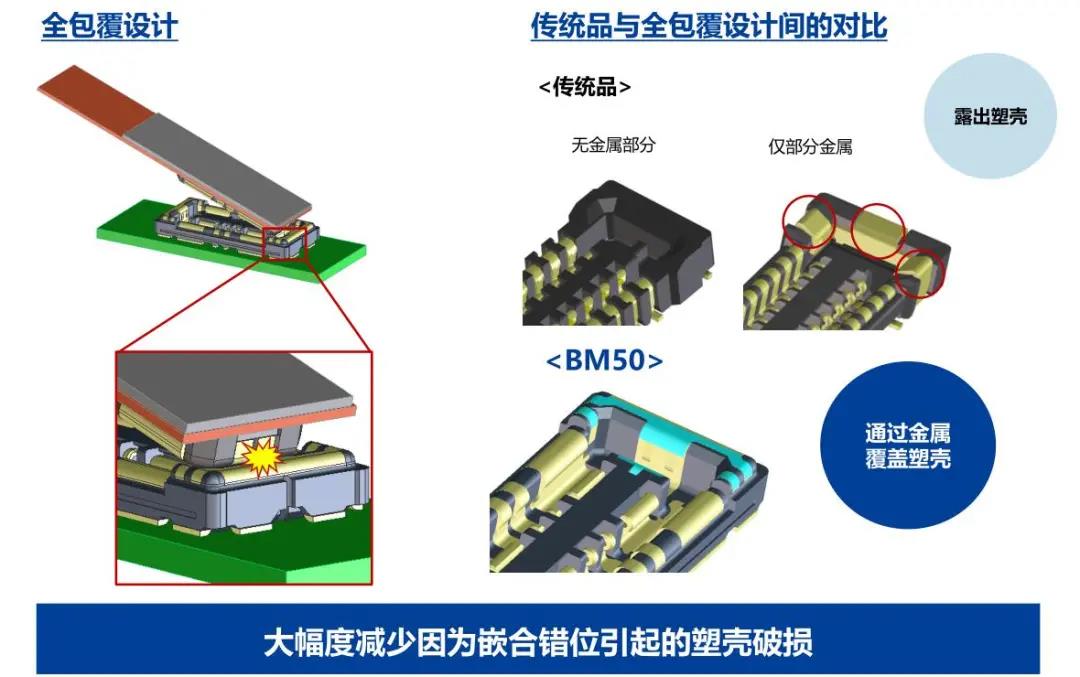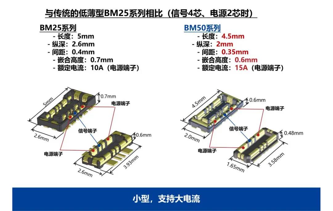 BM50 Series丨支持15A、小型全包覆、 電源?信號(hào)復(fù)合、板對(duì)FPC連接器