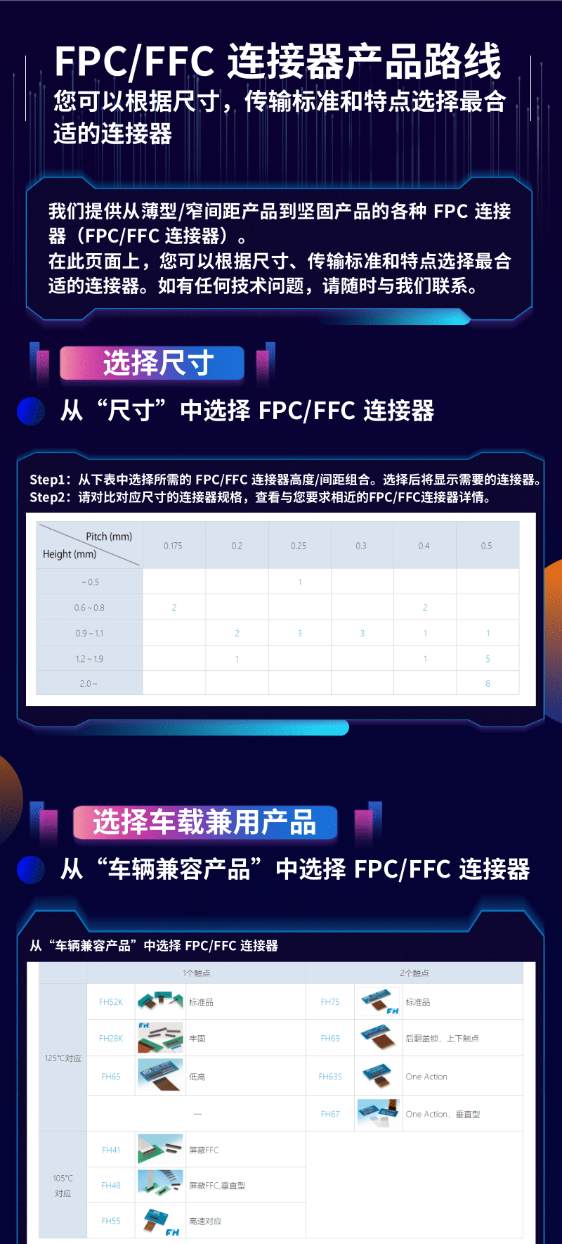 我們提供從薄型/窄間距產(chǎn)品到堅(jiān)固產(chǎn)品的各種 FPC 連接器(FPC/FFC連接器)。
