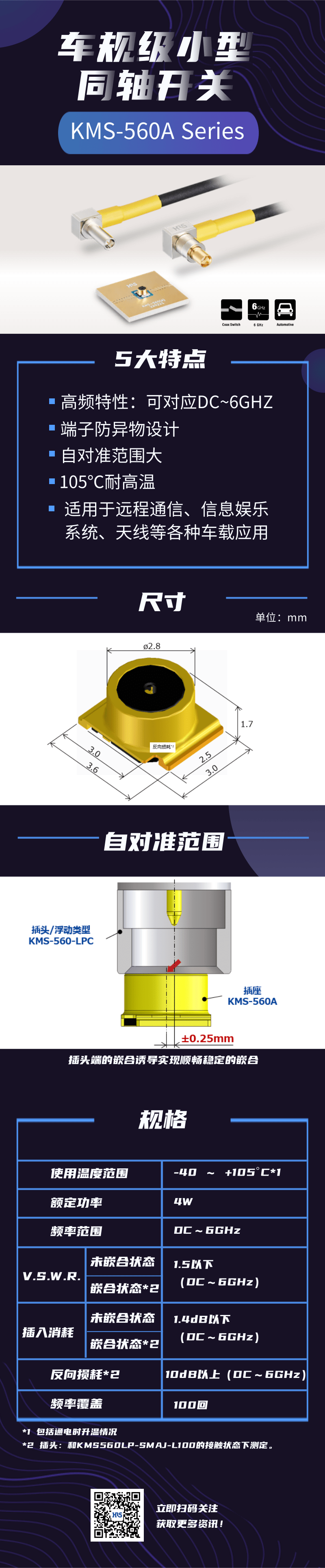 【新品發(fā)布】車規(guī)級小型同軸開關(guān)KMS-560A系列