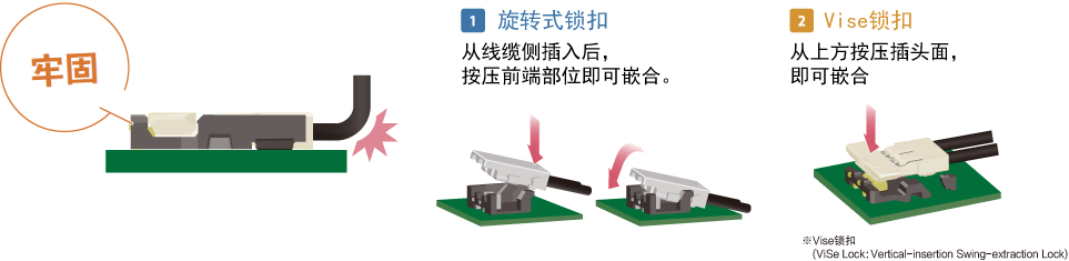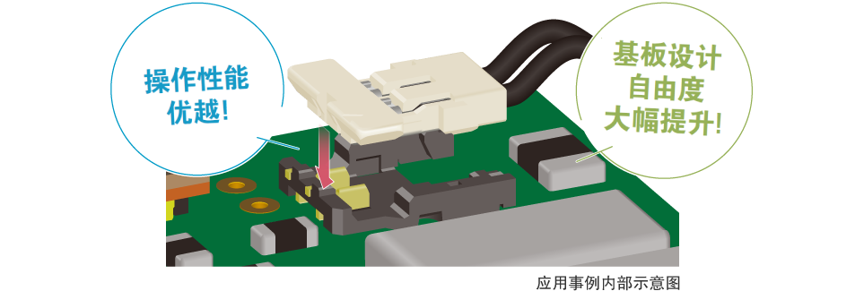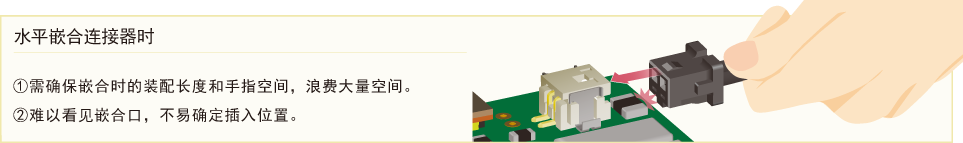 垂直嵌合不影響其他元器件,有效節(jié)省空間,提高基板設(shè)計自由度。采用從上向下的嵌合方式,易于確認嵌合口,從而更好地確定插